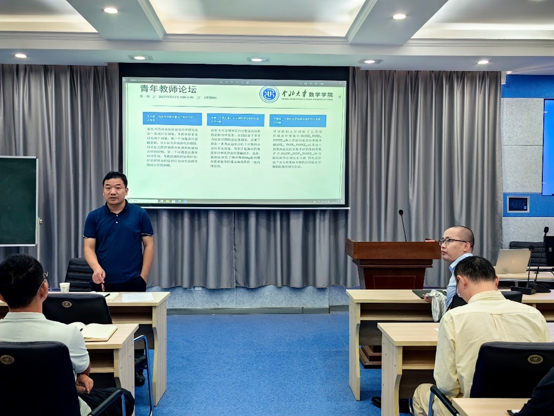 为进一步促进我院青年教师学术事业发展、活跃学院学术氛围、加强青年教师之间的学术交流,数学学院创办了数学学院青年教师论坛系列学术活动,并于2023年9月14日上午9时举办了论坛第一期。院长孙桂全、副院长吴森林、学院青年教师,以及部分研究生参加了此次活动。本期论坛由院长孙桂全主持。