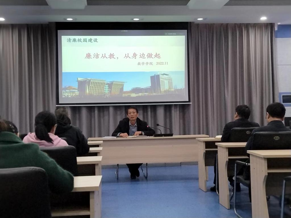 根据学校党风廉政建设工作的统一部署和要求,为进一步强化党风廉政建设责任意识,落实全面从严治党各项要求,数学学院于2022年11月15日下午17:00在9号楼九层会议室召开了党风廉政建设工作会议,部署各项党风廉政建设工作。会议由数学学院党委书记薛亚奎主持,全体院领导、各学科部主任、各科室负责人参加了会议。