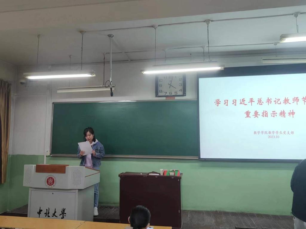 为深入学习贯彻习近平总书记教师节重要指示精神,大力弘扬教育家精神,10月12日下午,数学学院研究生学生党支部、数学学生党支部、统计学学生党支部组织专题学习贯彻习近平总书记教师节重要指示精神。本次专题学习由研究生学生党支部领学。