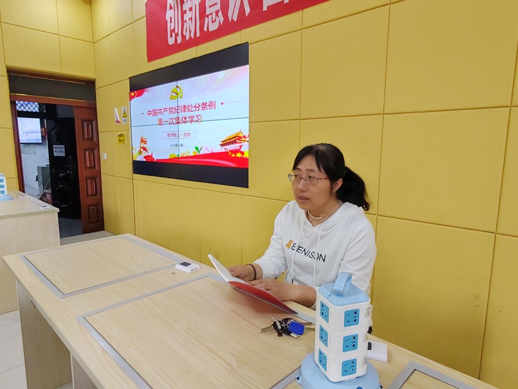 2024年4月25日下午,数学学院教工一支部在九号楼一层创新与演示实验室对新修订的《中国共产党纪律处分条例》进行第一次集中学习。新修订的《条例》共158条,与2018年《条例》相比,新增16条,修改76条。本次由曹文军同志带领大家学习第一篇总则中的一至五章内容,共四十八条内容。