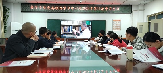 20241113日下午,数学学院党委在9号楼610学院会议室召开党委理论学习中心组学习会,副校长杨风暴和学院领导班子、党委委员、各党支部书记、教师代表一起参加了本次学习,会议由院党委书记薛亚奎同志主持。会议专题学习了二十届三中全会精神、习近平总书记最新讲话和指示批示精神、时代楷模杨士莪同志的先进事迹。