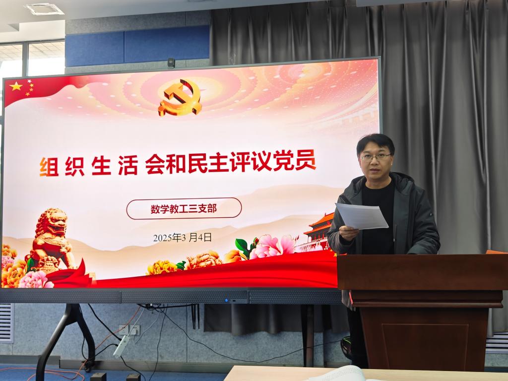 3月4日下午数学学院教工第三党支部在九号楼924会议室成功召开组织生活会,会议聚焦深化理论学习,探索推动学院教育工作新发展路径。