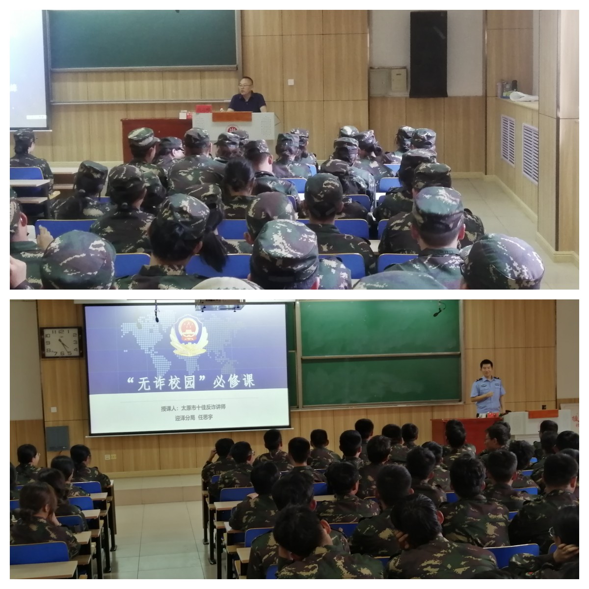 第二讲:防诈骗专题讲座。针对目前电信诈骗频发,为提高学生防诈骗意识,学院邀请了太原市公安局迎泽分局任思宇警官为同学们做“无诈校园”专题讲座。任警官从“什么是电信诈骗”、“电信诈骗的特点”、“电信诈骗的手段”以及“如何预防电信诈骗”等方面结合生动的案例进行讲解,他提醒同学们切勿轻易相信他人,不轻信来历不明的电话、短信,不轻易透露自己的身份和银行卡的信息,要不断加强在生活中遇到诈骗时灵活应对能力,提高各方面自我保护、自我应对能力。