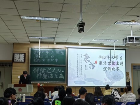 11月11日晚上七点,我院生活助学部于09101H教室顺利举行了2023年大学生廉洁文化主题演讲比赛。