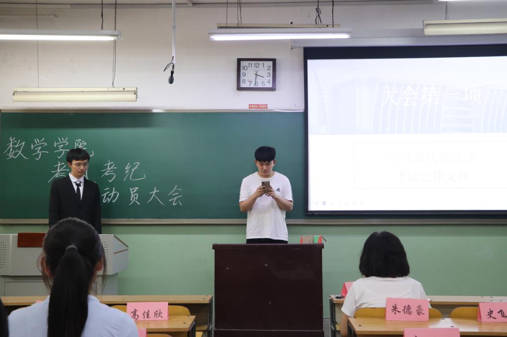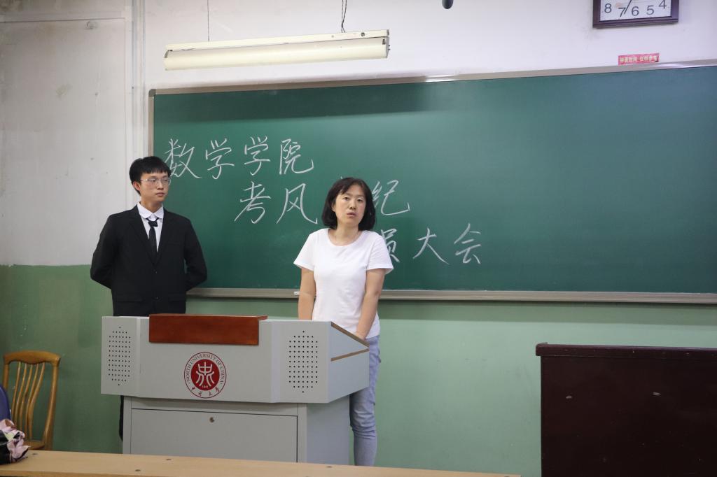 大会开始,由学风部代表宣读考试纪律文件。通过宣读,大家清楚了中北大学的考场规则以及考试时应当遵守的纪律,对数学学院全体学生文明答题、诚信应考做出了具体要求。