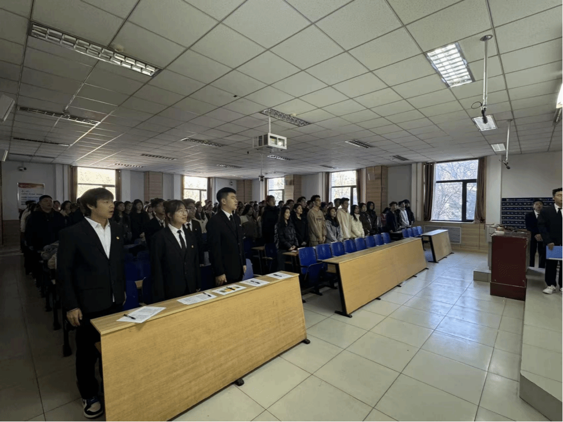 仪式现场氛围庄重热烈,四项议程依次有序推进。伴随着激昂嘹亮的团歌声,全体人员起立肃立,开班仪式正式拉开帷幕。随后,数学学院学生兼职团委副书记仝晓兰同学发表开班致辞,围绕青马工程初心使命,鼓励学员们坚定理想信念、锤炼过硬本领。数学学院学生会主席金子鑫同学发言并宣读考核制度,明确学习实践要求,传递“团结、创新、积极、求实”的班风理念。最后,全体学员在主持人带领下庄严宣誓,铮铮誓言凝聚着听党话、跟党走的坚定决心,展现了新时代青年的责任担当。