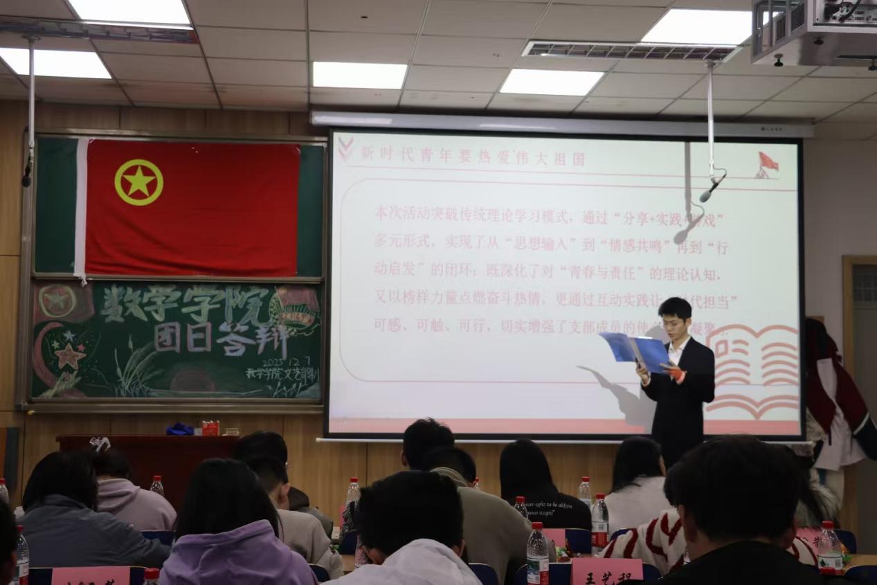 数学学院各团支部于2025年12月7日开展“以青春之名,担强国之责”团日活动答辩,为全院师生带来了一场知识与文化的盛宴。