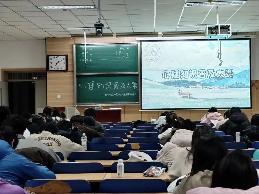 2023年12月7日、8日晚上7:00,数学学院“心灵之约”心理健康辅导站组织策划了数学学院第二届心理知识普及大赛,本次活动数学学院23级全体同学参加。在大家的共同努力下,活动圆满完成。