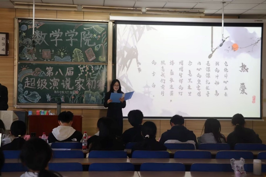 在充满活力与梦想的大学校园里,一场以语言传递热爱、以激情点燃梦想的演讲盛会——超级演说家校园初赛,于3月29日在学校九号教学楼热烈开启。本次活动吸引了来自不同专业、年级的同学们踊跃参与,他们用生动的演讲,抒发对热爱的执着追求,奏响了一曲充满青春活力的梦想之歌。