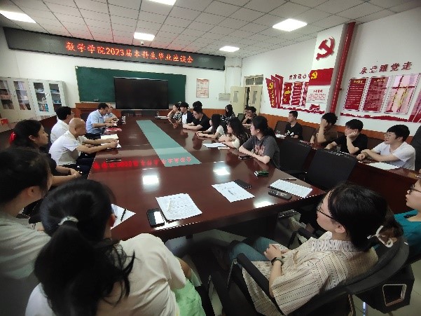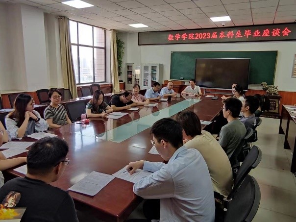 6月16日上午,数学学院在学院会议室举办2023届本科毕业生代表座谈会。本次座谈旨在和学生交流各专业在培养学生各环节中遇到的问题,并鼓励毕业生勇敢追梦,无畏前行,在各自的岗位上积极建功立业。学院党委书记薛亚奎、副院长王鹏、副院长吴森林、各系主任、各班主任、教师代表及2023届毕业生代表参加座谈,会议由副院长王鹏主持。