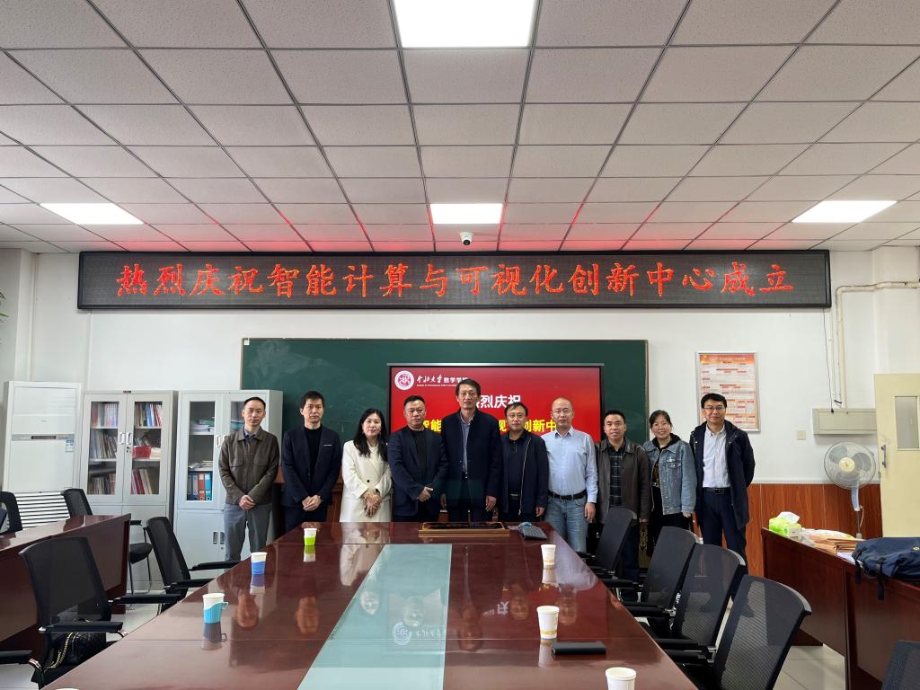 2023年10月31日上午,智能计算与可视化创新中心在数学学院六层会议室揭牌成立。数学学院党委书记薛亚奎、教学副院长王鹏、科研副院长吴森林、计算科学系主任薛震、概率统计系主任张峰、数学与应用数学系主任姚林红,以及山西维信致远科技有限公司董事长郭志强等共同参加此次揭牌仪式。