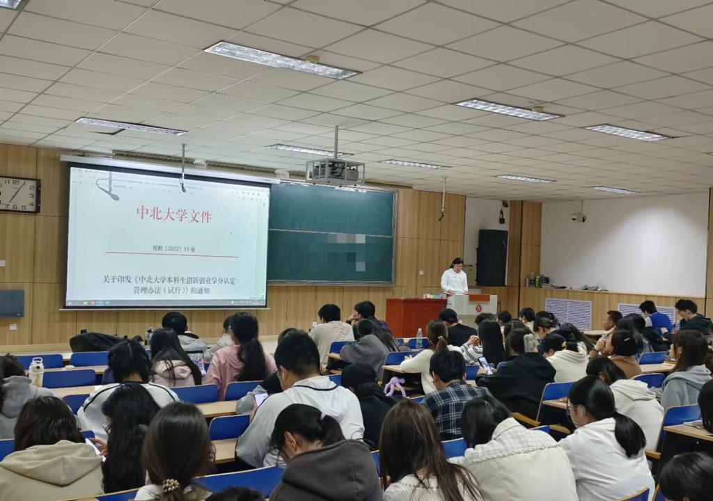 会上曹老师为大家讲解了参与创新创业活动的意义,并对《中北大学本科生创新创业学分认定管理办法》文件中创新创业实践学分的几种获取方式及认定细则进行了详细解读。对于同学们关心的 “小学期”实践能力培养计划,曹老师根据学校“小学期”项目实施方案要求,结合我院具体情况,介绍了项目的实施背景、实施流程及时间节点。最后对于同学们创新创业方面存在的疑问进行了一一解答。