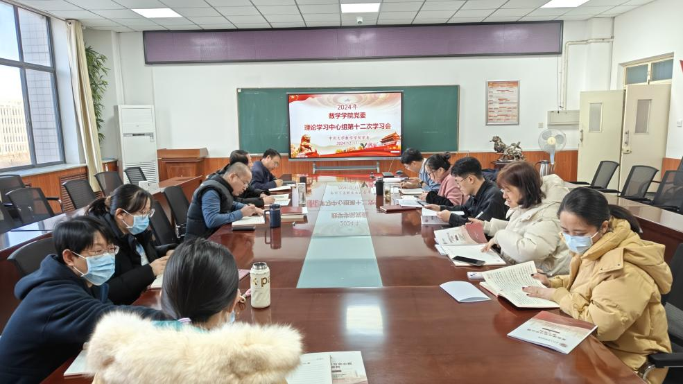 2024年12月17日下午,数学学院在9号楼6层会议室召开2024年党委理论学习中心组第十二次集体学习会议。会议由院党委书记薛亚奎同志主持,全体处级干部、院党委委员、各党支部书记、教师代表一起参加了本次学习。
