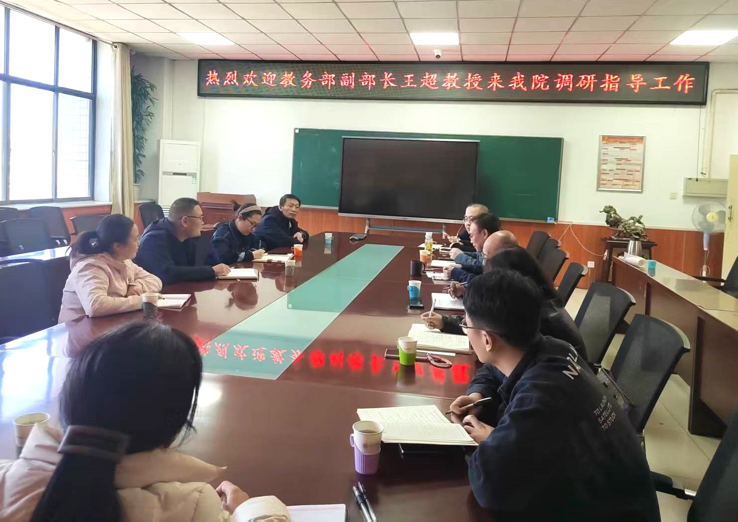 3月20日下午,教务部王超副部长一行3人莅临我院开展调研指导工作。我院党委书记薛亚奎、副院长王鹏、副院长吴森林、全体系主任和教学科成员参加了调研座谈会。会议由副院长王鹏主持。