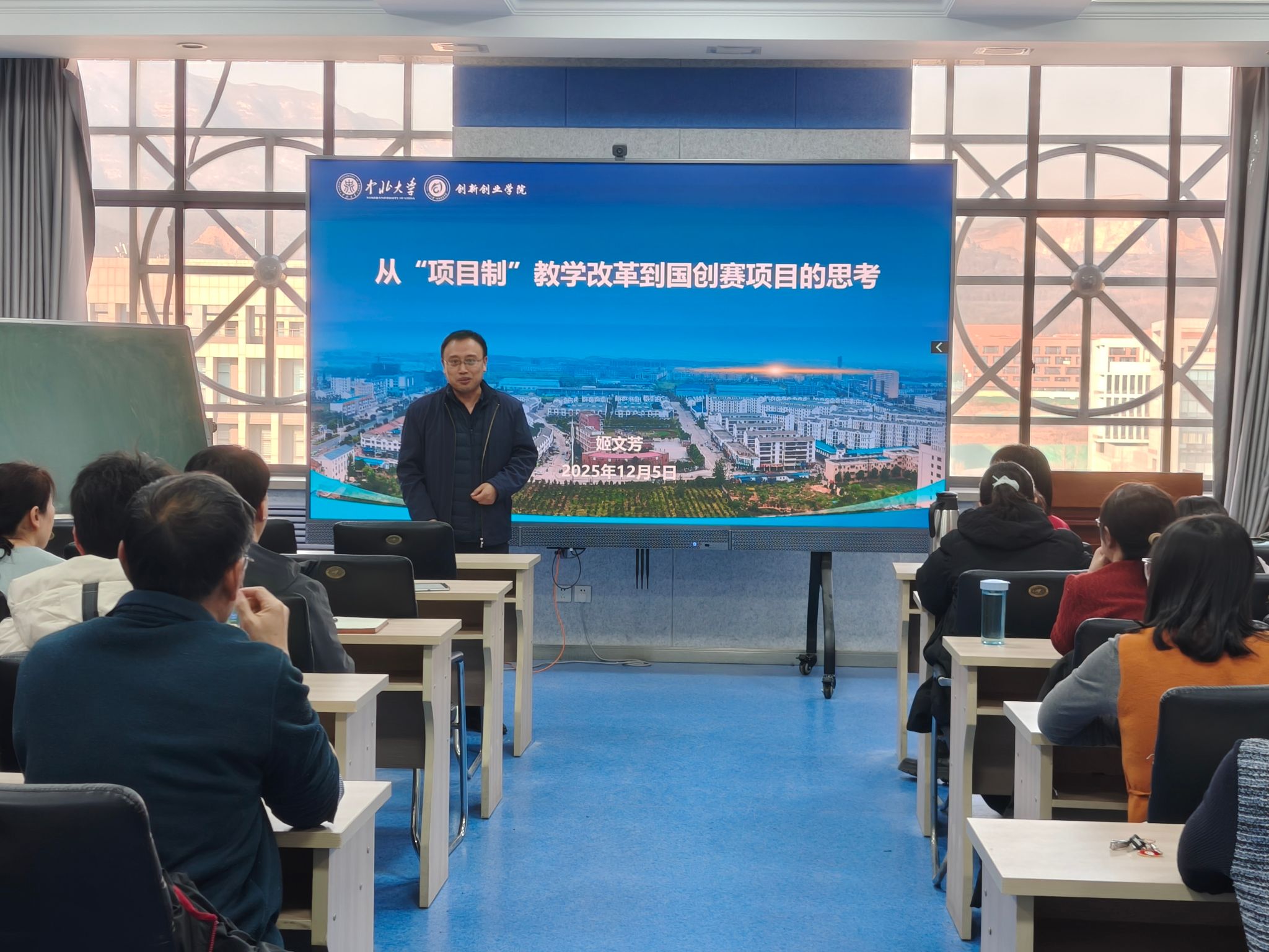 为扎实做好2026年大学生创新创业训练计划项目申报的动员部署与筹备工作,切实提升教师指导双创项目和学科竞赛的能力,2025年12月5日下午,数学学院特邀创新创业学院副院长姬文芳老师,为全院教师开展大创项目申报与学科竞赛专题培训讲座。讲座由副院长王鹏主持。
